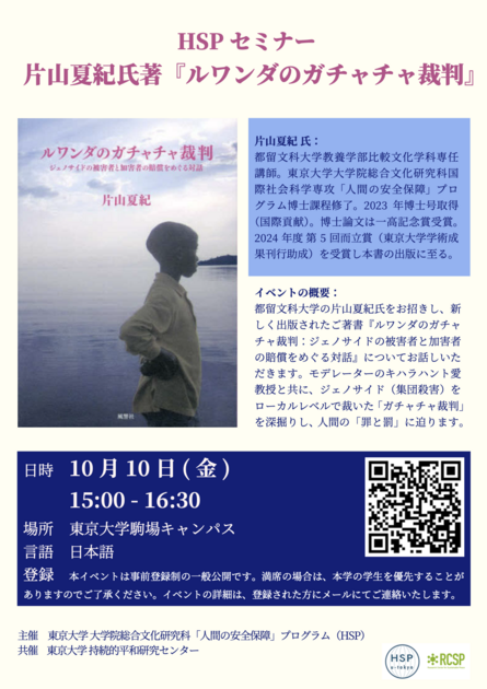 HSPセミナー:片山夏紀氏著『ルワンダのガチャチャ裁判』